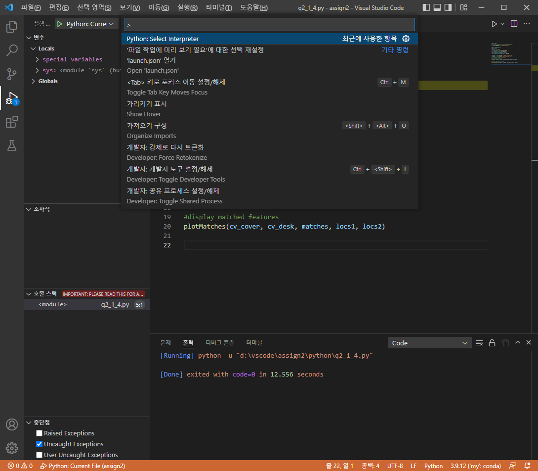 내가 만든 환경에서의 Python을 선택해준다.